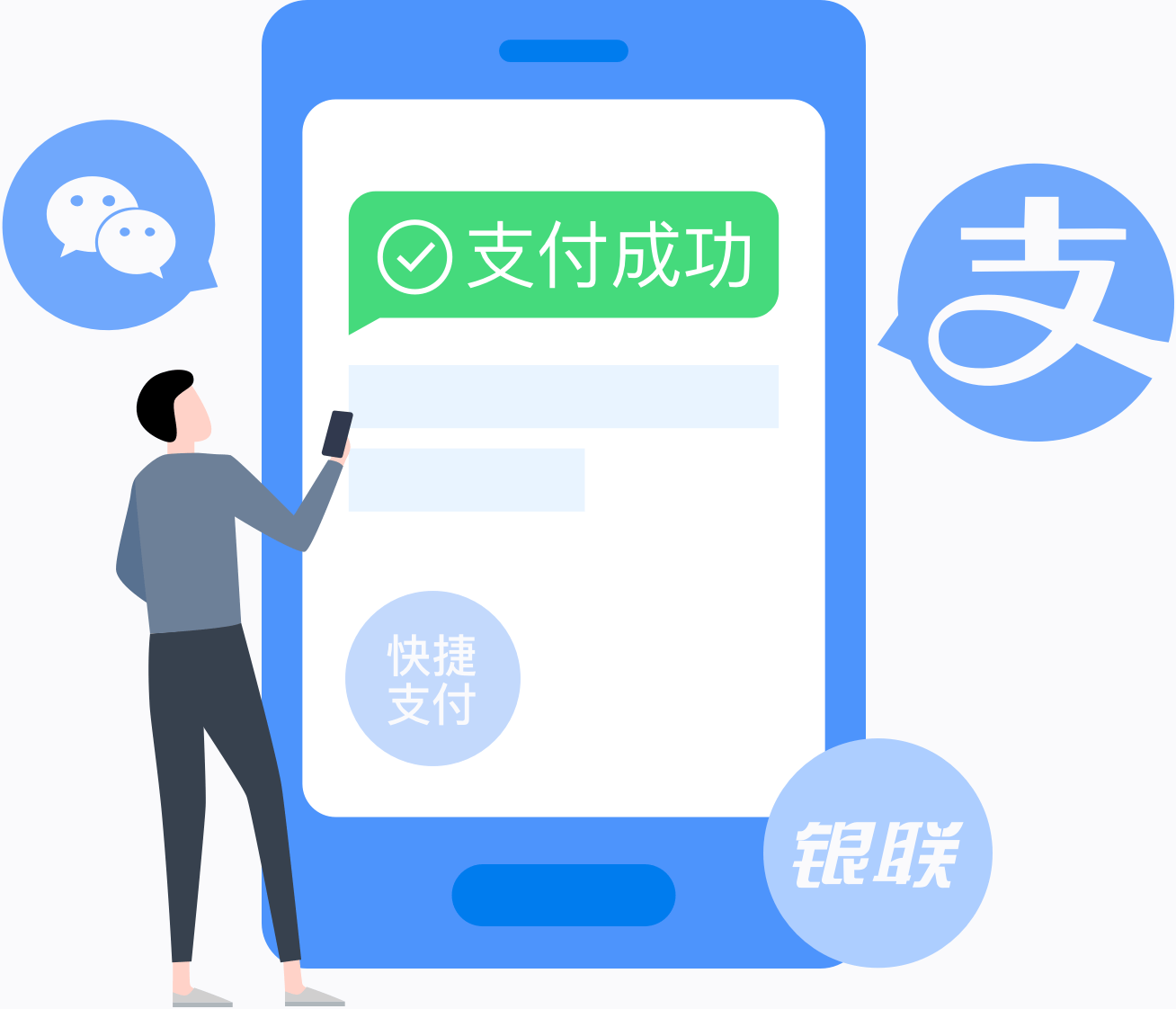 支持微信、支付宝、银联、快捷支付等主流移动支付网关,以及银行定制网关对接,满足更多需求。