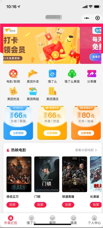 外卖服务/美食饮品/视频会员/出行服务全聚合