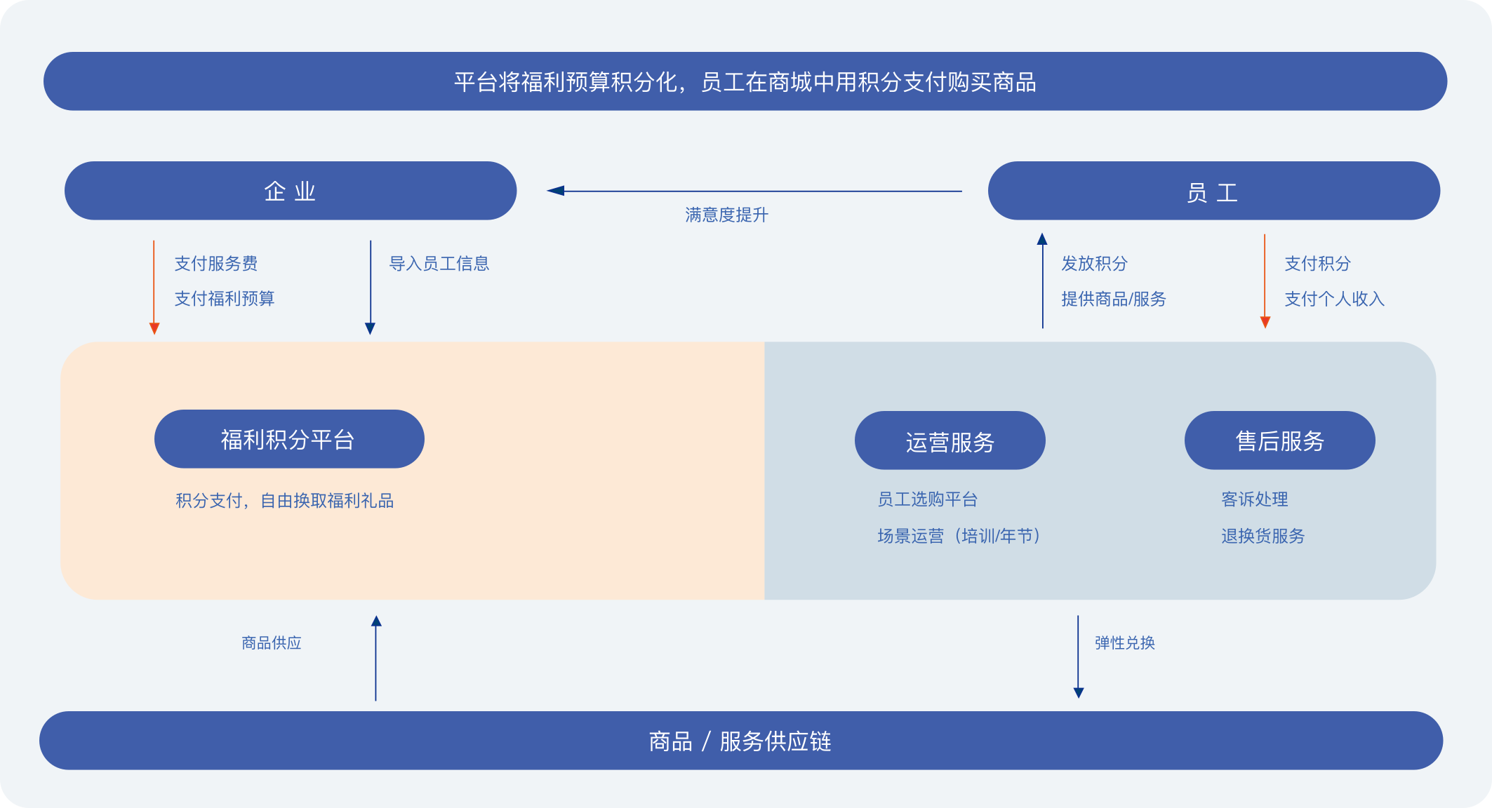 在不改变企业福利政策的前提下,通过整合服务将已存在的分散场景装配式福利集成延展